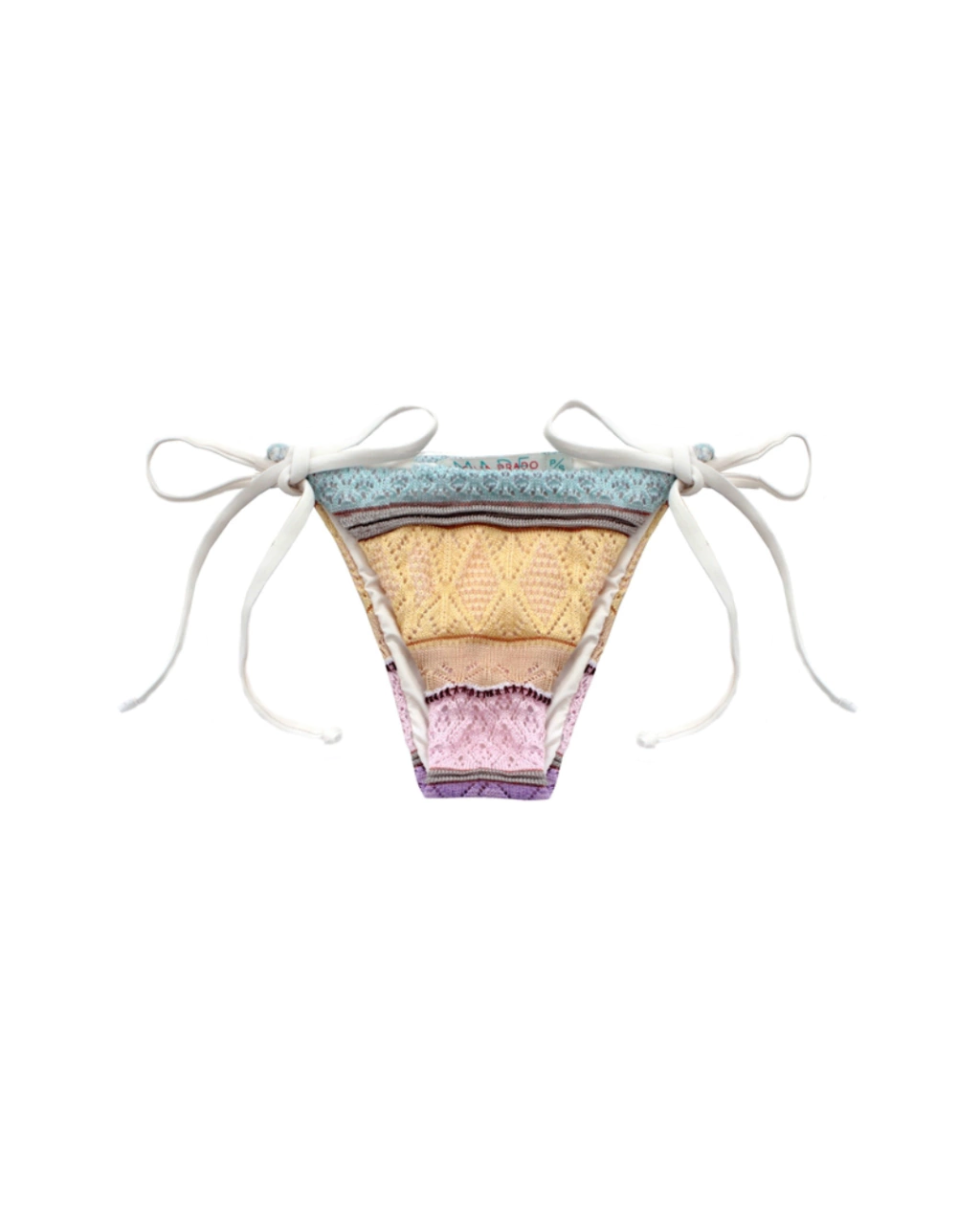 Bottom Cortininha Maria é a peça perfeita para quem busca sofisticação e conforto à beira-mar. Confeccionado em tricot rendado com listras delicadas no tom sourbet, traz um toque de elegância única. Seu forro em malha específica para biquínis oferece segurança e ajuste perfeito. Combine com o Top Isabel e destaque sua beleza com charme e delicadeza.