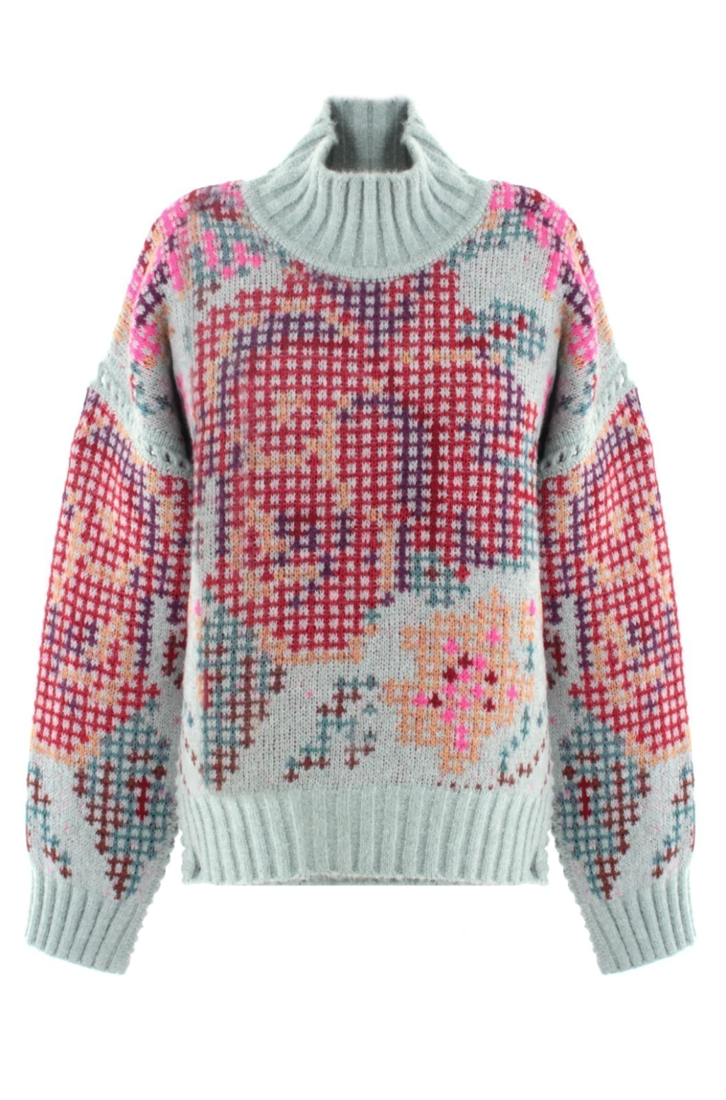Max Pull Dalva: A peça que traz a beleza da natureza para o seu guarda-roupa. Este max pull é adornado com um delicado desenho de flores que imitam o ponto cruz, criando uma combinação de cores vibrantes que encantam.