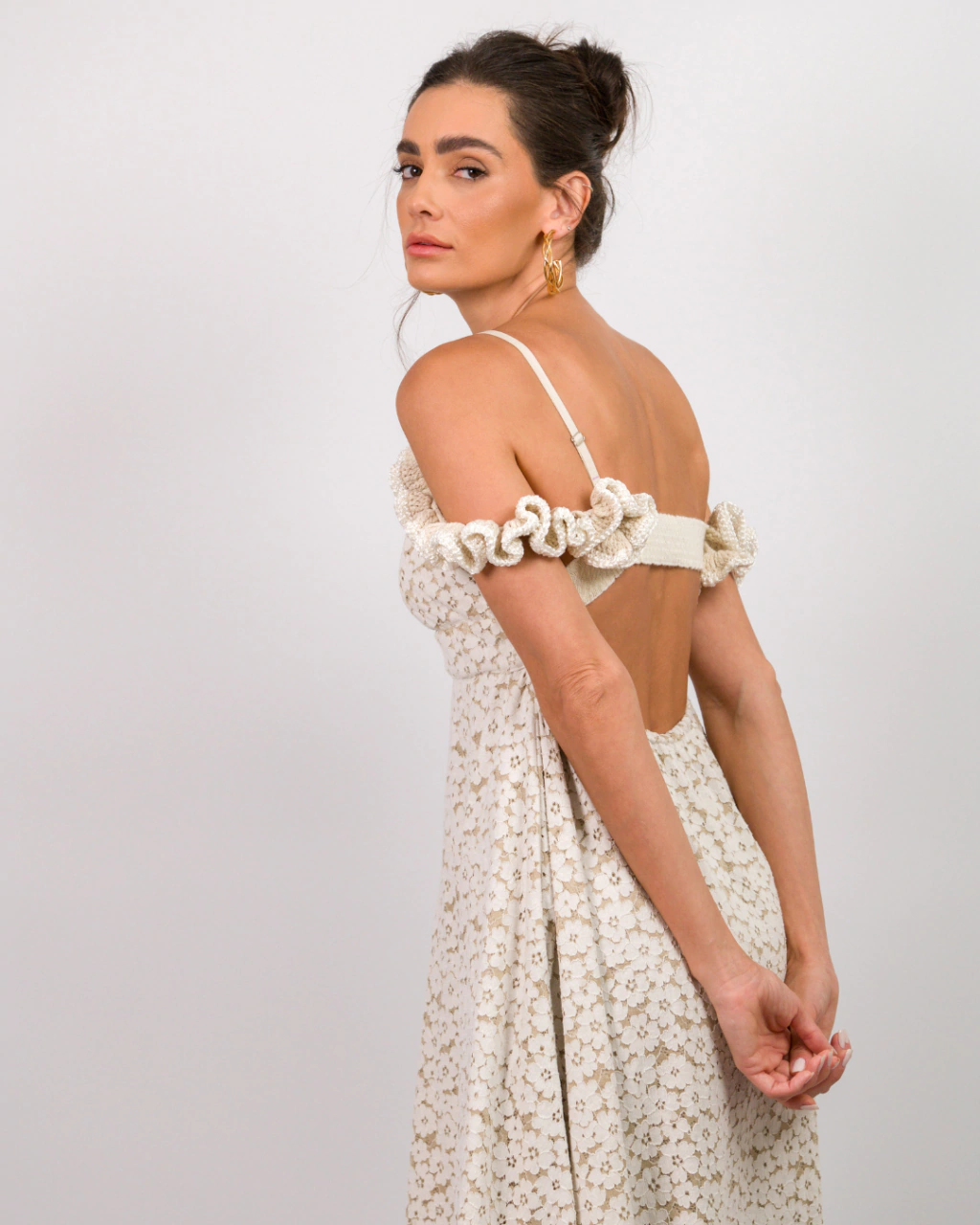 Conheça o Vestido Giana, uma peça feminina e encantadora que une delicadeza e sofisticação. Confeccionado em laise de algodão, proporciona conforto e leveza ao vestir. Seus acabamentos em crochê handmade nas alças realçam a exclusividade e o charme artesanal da peça. Ideal para ocasiões especiais, o Vestido Giana é um convite à elegância natural e ao estilo único.